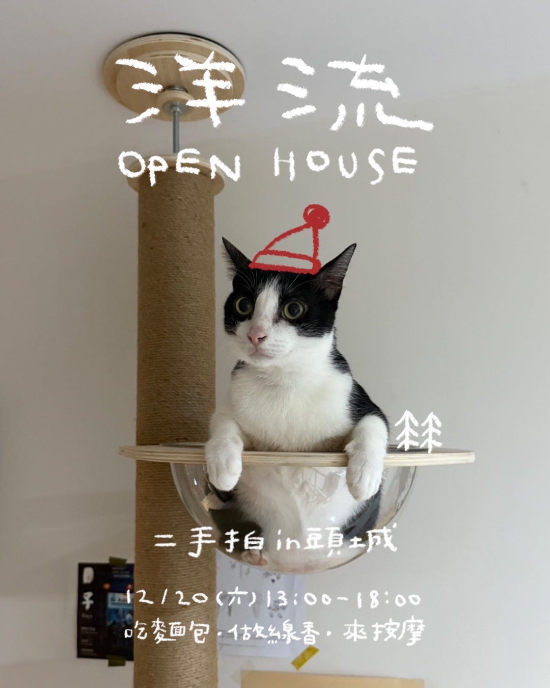 今年特別的是,在家裡舉辦了聖誕派對,有二手物品的拍賣,也有一些小小的手工活動,邀請了朋友們一起來玩,好像越來越接近當初租了洋流公寓時的想像。當時我說我想做深夜咖啡廳、想要可以辦市集、想要有駐點的活動、想要辦教學。但可愛的是,我個人對於統籌這件事其實一竅不通,這次的活動多虧了兩位執行力很高的夥伴,我相信活動一定會很好玩的。每一年每一年想做的事,果然也都慢慢的達成了,還有什麼事比這些更棒的呢?希望一直保持著可愛的目光去照看這個世界、還有其他的人、及未知的的土地。